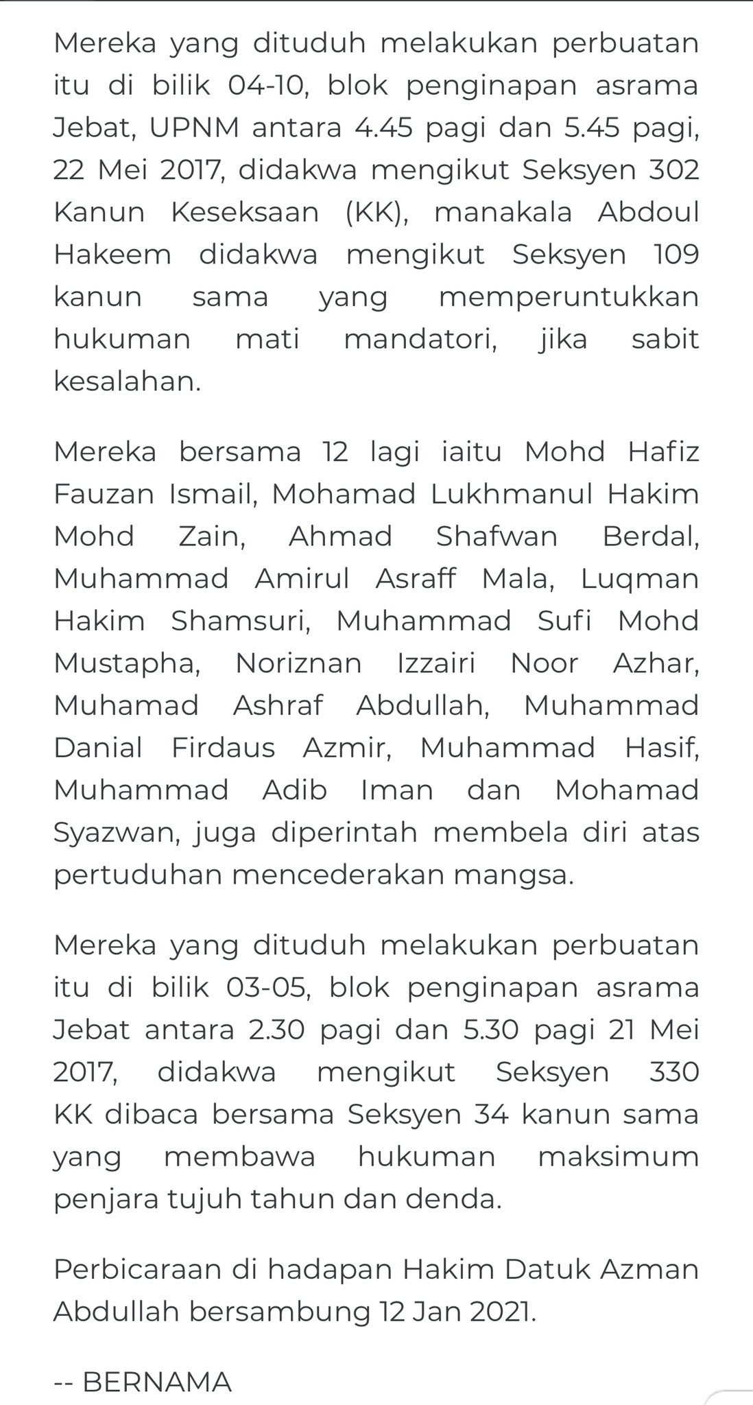 Seksyen 504 kanun keseksaan kerana sengaja mengaibkan dengan niat hendak membangkitkan pecah. Seksyen 354 kanun keseksaan pdf kanun keseksaan akta 574 pdf kanun keseksaan akta yang disebut kanun dalam dalbert dd. Dua pelajar ipta ikat jamin rm5000: Sinarharian results for seksyen 427 kanun keseksaan. Kes akan disiasat mengikut seksyen 188, 504, 505 (b) kanun keseksaan, seksyen 14 akta kesalahan kecil 1955 dan seksyen. Seksyen 420 kanun keseksaan pdf. 2 мин и 29 сек. Seorang pemuda, amal adil alias, 26 tahun, dituduh di bawah sesyen 302 kanun keseksaan kerana membunuh tunangnya You have just read the article entitled seksyen 427 kanun. Seksyen 203a kanun keseksaan bukti barisan nasional tidak telus. Dia didakwa mengikut seksyen 323 kanun keseksaan yang memperuntukkan hukuman penjara maksimum setahun atau denda. We did not find results for: Carian mengenai topik seksyen 427 kanun keseksaan astro awani.